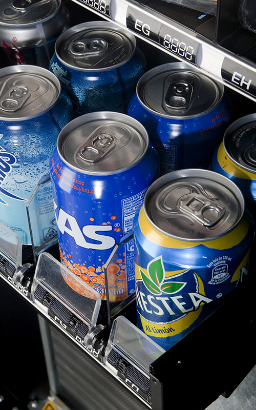 Das Innere des Automaten wurde so entworfen,dass Produkte aller Art verkauft werden können, kleine und große, Produkte mit oder ohne Kühlbedarf, zerbrechliche oder empfindliche.